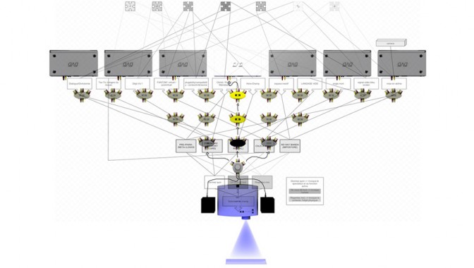 X intrigue est un projet d’installation qui propose de complexifier le dispositif primaire de la projection vidéo par l’éclatement de signaux vidéos, au sein d’un réseau synaptique, d’une forme de mind map (cartographie mentale). Les pistes vidéos, émanant de plusieurs auteurs, ne sont ainsi accessibles que par l’aiguillage de certains parcours précis.