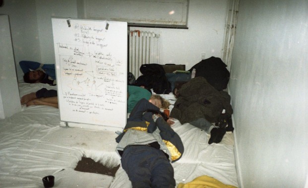 La nuit du Samedi 11 Octobre, dans et entre les espaces artistiques De La Charge, H.E.K.L.A, Rosa Brux et Abilene, les spectateurs étaient invités à pénétrer les Limbes, pour - et peut être ne jamais en ressorti - vivre une soirée artistique ponctuée de transhumances, projections astrales, sound system, aires de repos, creux, absences, débats, films, ritournelles, cocktails, soupe à l’oignon, Comptine S.F etc.